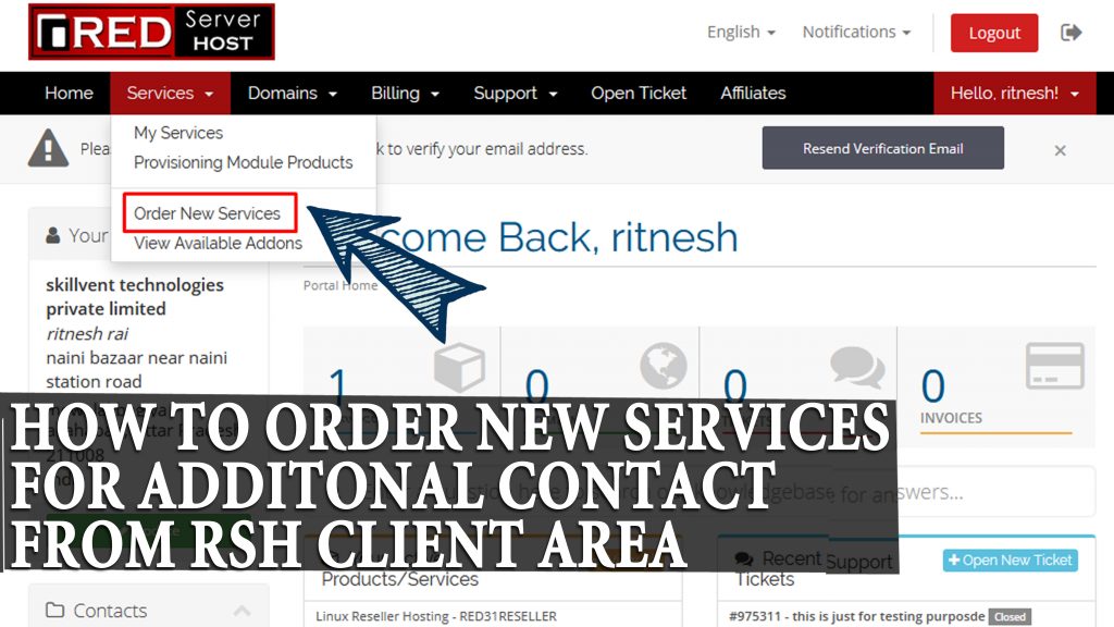 Client Area, RedserverHostHow to order services for Additional accounts from Redserverhost client area?