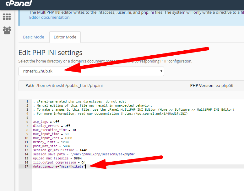 You’ve successfully changed your cPanel default timezone. Moreover, you can do it from the MultiPHP INI Editor also that is present inside your cPanel itself. Let me show you how: