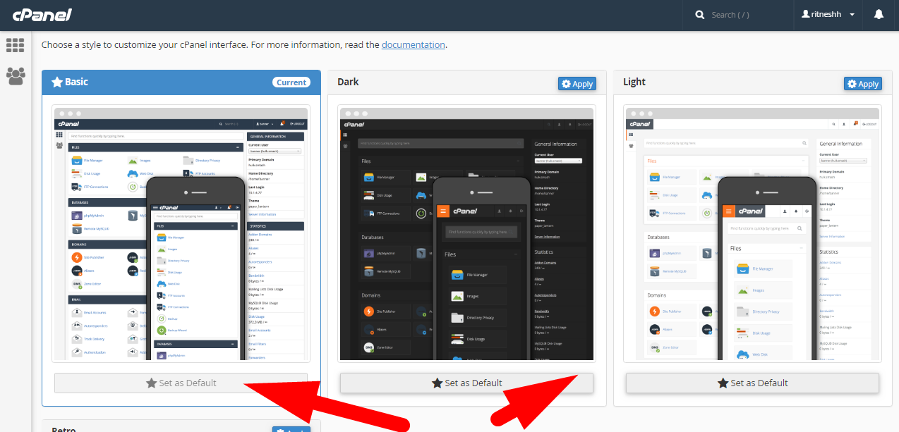 In this section you get to choose a style to customize your cPanel interface