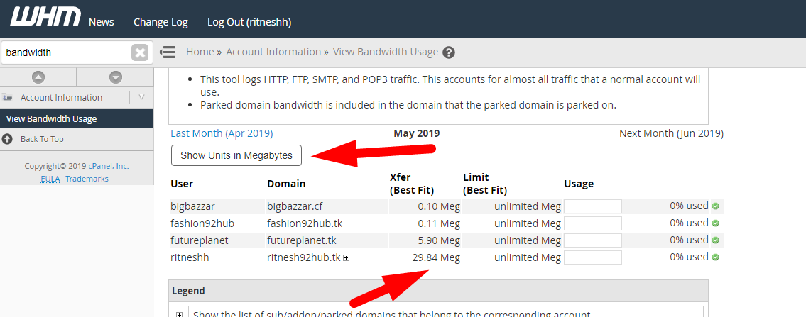 How to check Bandwidth consumption detail of every cPanel account in WHM? [Updated June 2019]