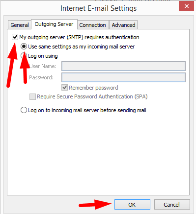 - Now go to the Outgoing server and do as shown below