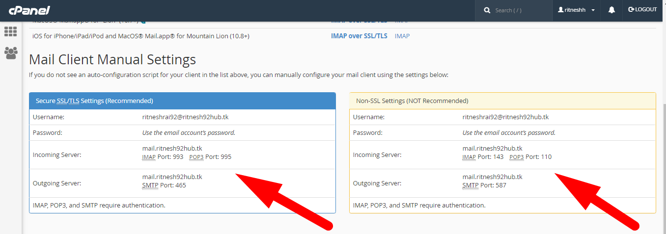 Now here you get the Mail Client Manual settings for SSL & Non SSL Settings