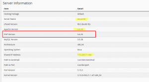 Step 3. Under the Item column, find PHP Version