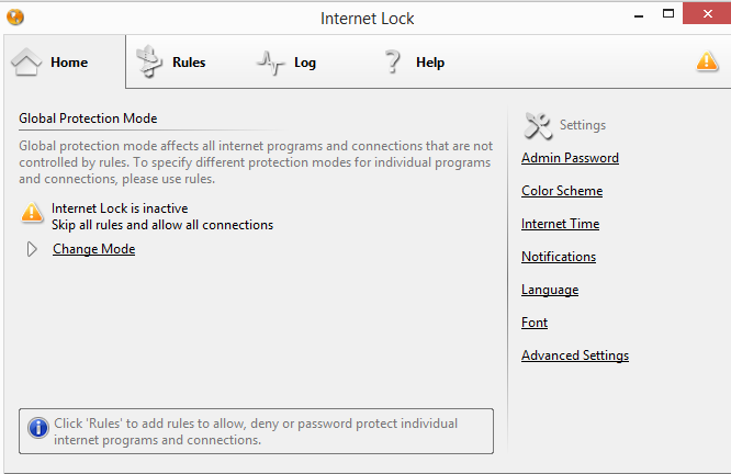 Internet Lock is a security tool that is used to access and control password protection for your internet connections and programs. With Internet lock, you can easily restrict internet access to any program.